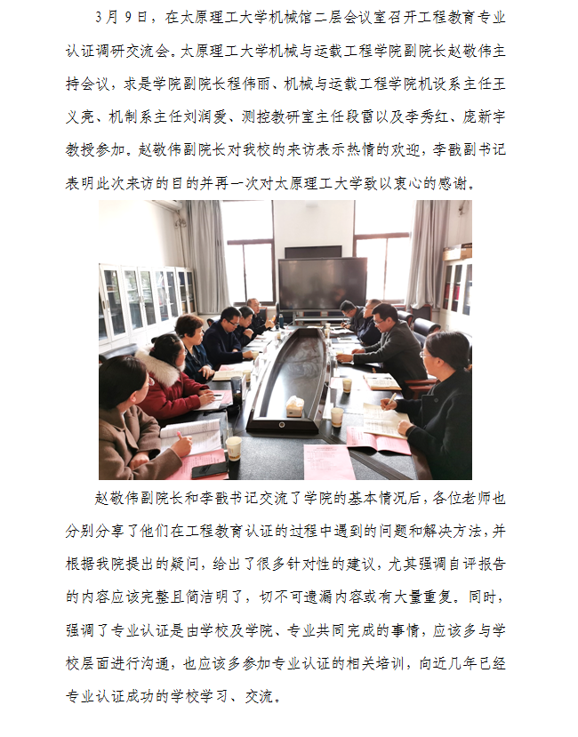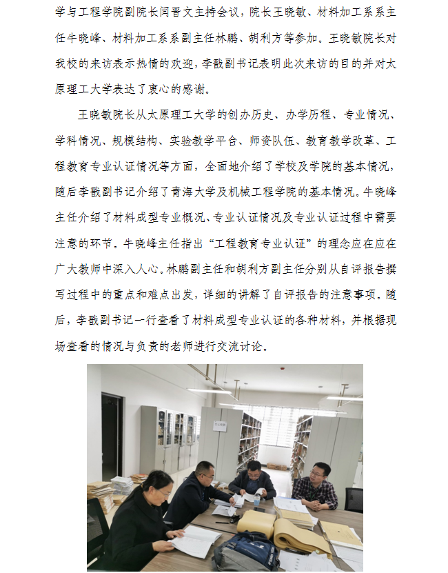太阳集团tyc33455官网赴太原理工大学考察材料成型及控制工程专业工程教育专业认证工作