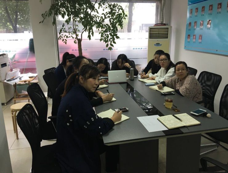 经过上周在集团总部的会议培训后,沈婕简单扼要的转述了两位老总所阐述的关于商务礼仪及萧山农商行新增商用车和存量车的业务知识及要点。各位在场同仁均认真仔细的记录了笔记,在遇到有疑问的地方大家相互讨论,气氛活跃。为大家开展新的业务渠道,搭好了一个全新的框架。