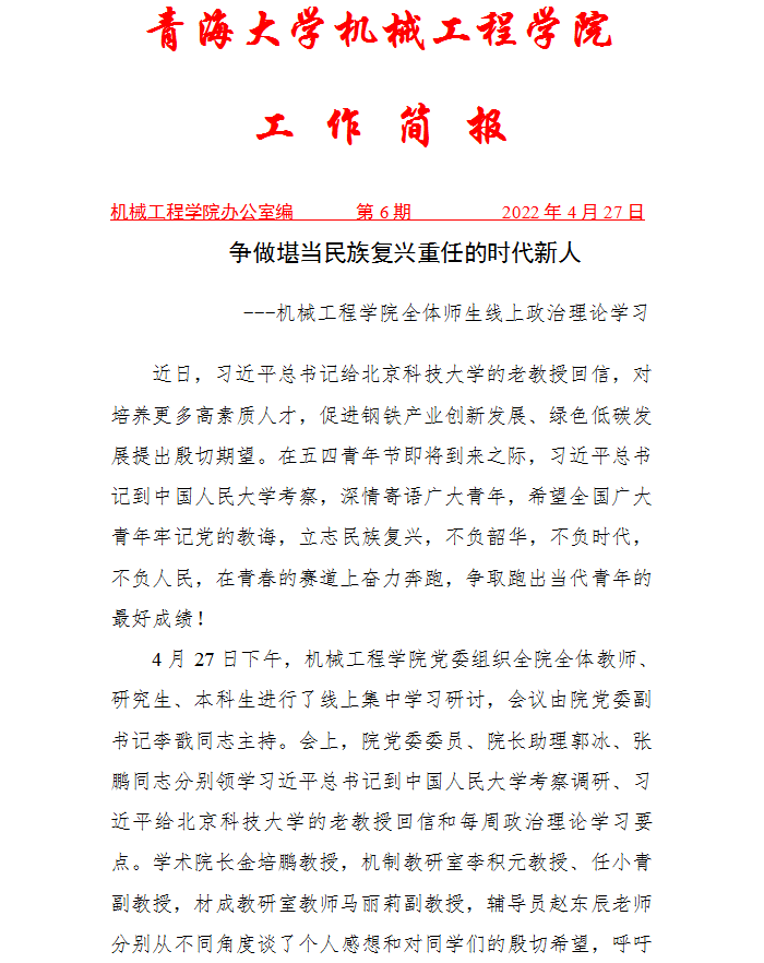 争做堪当民族复兴重任的时代新人 ---太阳集团tyc33455官网全体师生线上政治理论学习