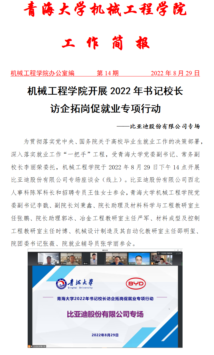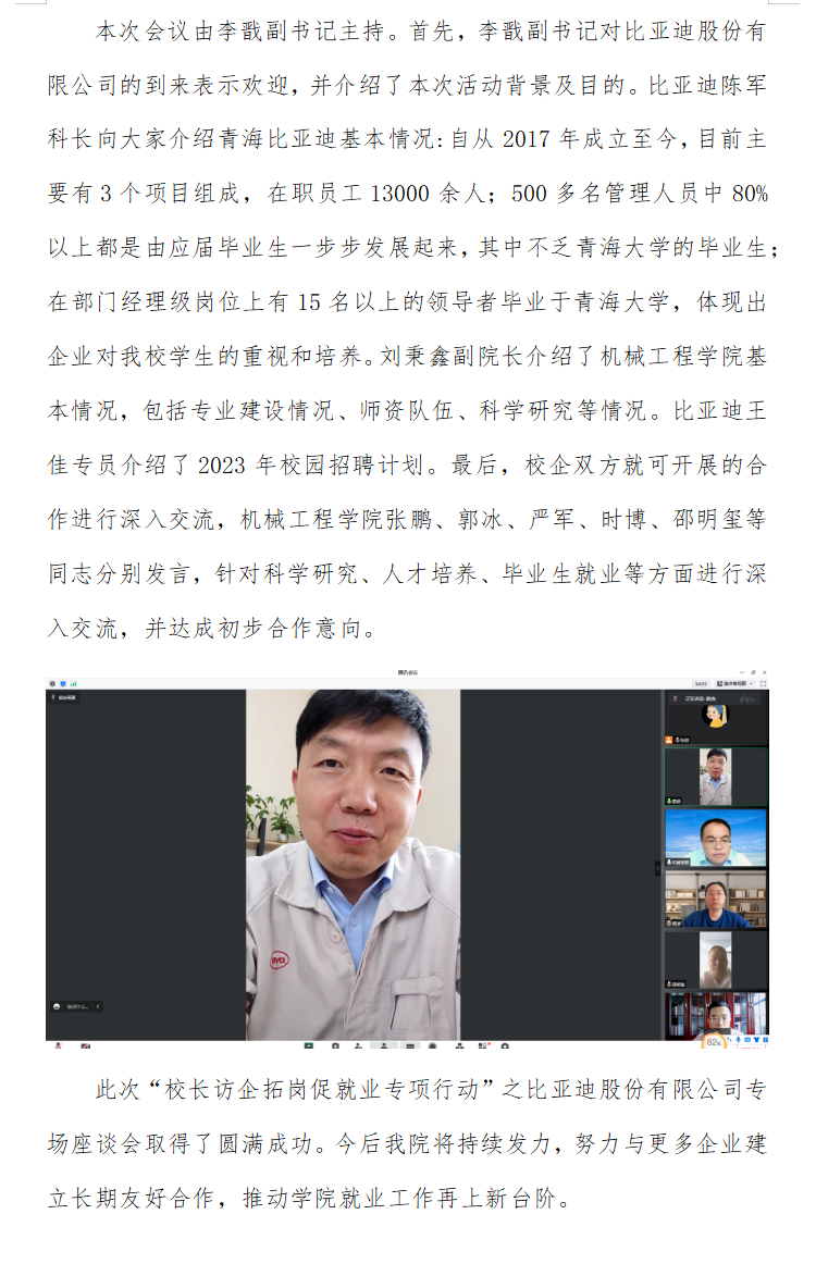 太阳集团tyc33455官网开展2022年书记校长访企拓岗促就业专项行动 ——比亚迪股份有限公司专场