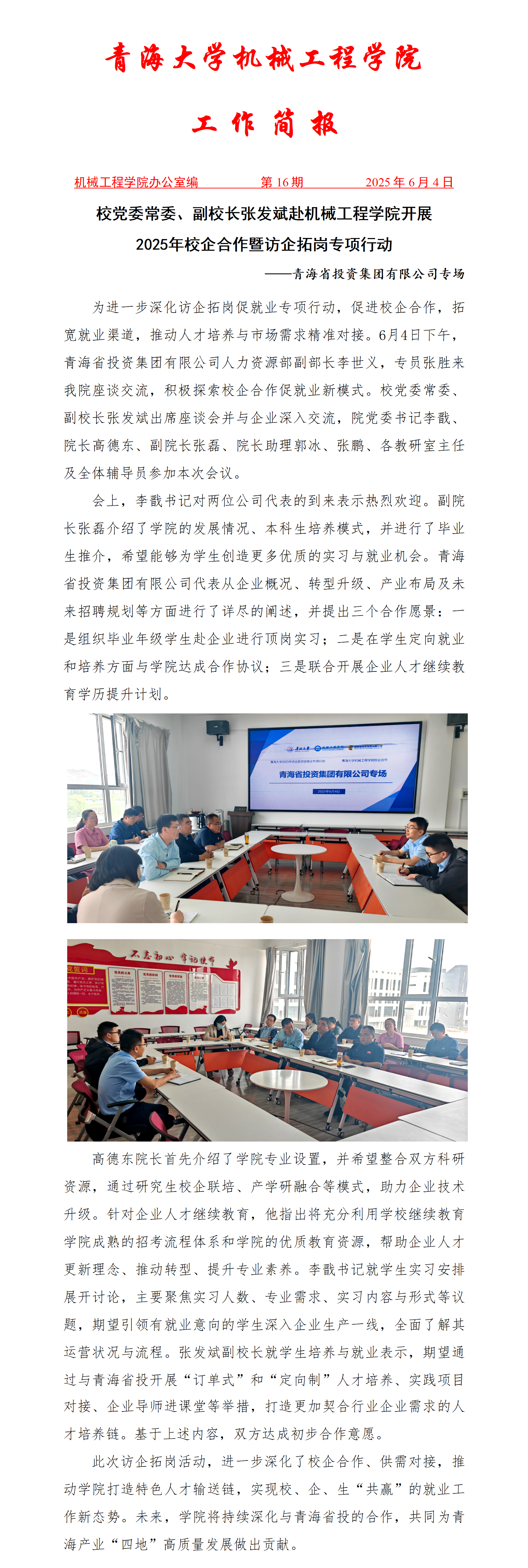 校党委常委、副校长张发斌赴太阳集团tyc33455官网开展2025年校企合作暨访企拓岗专项行动——青海省投资集团有限公司专场