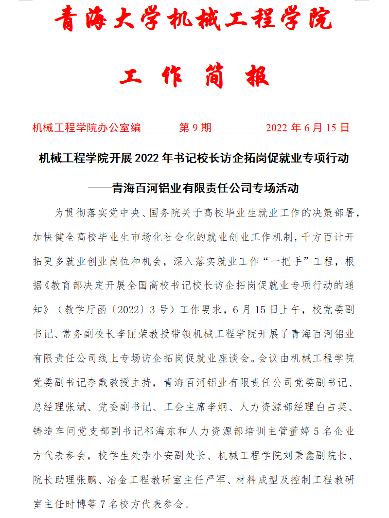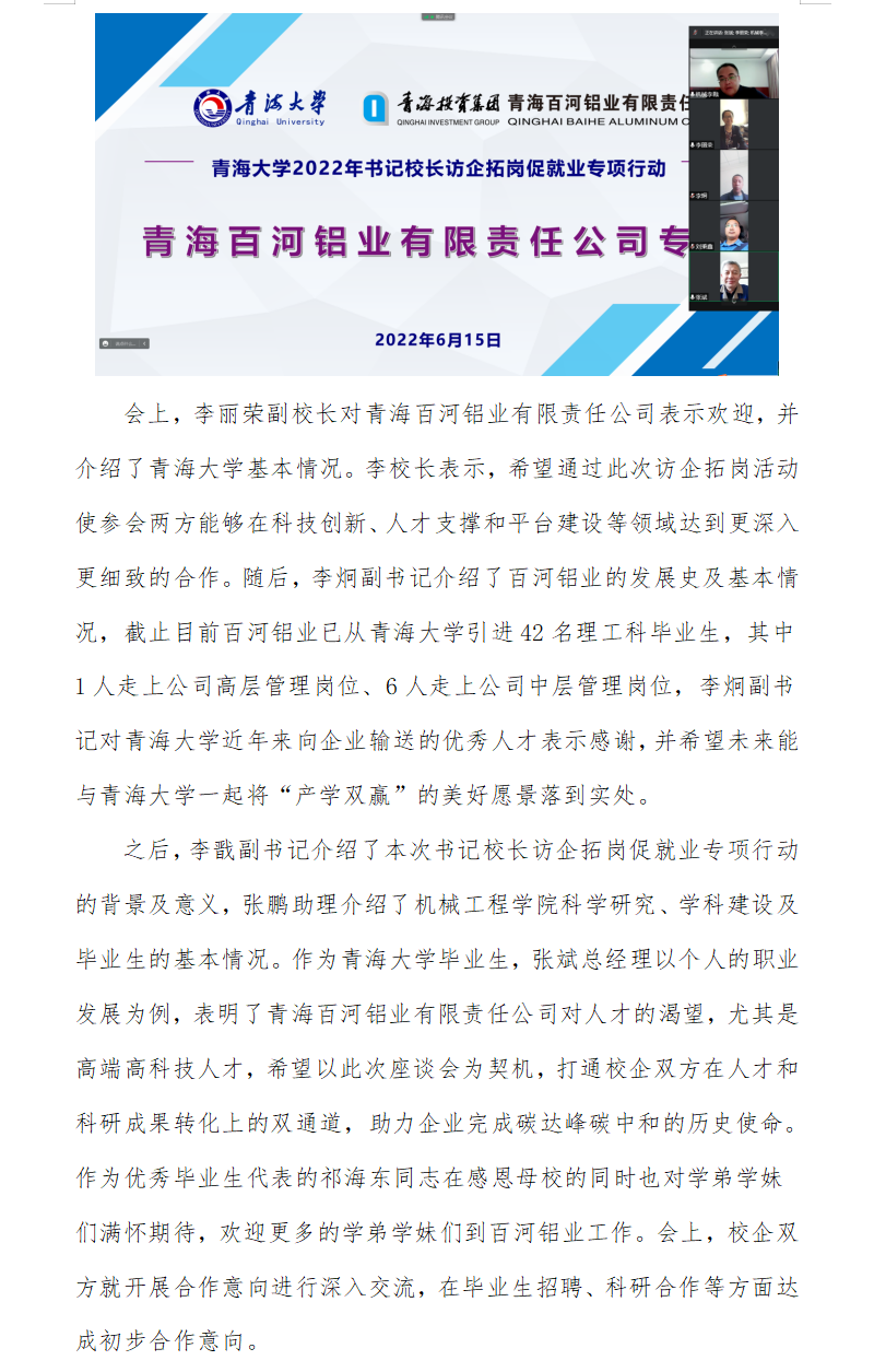 太阳集团tyc33455官网开展2022年书记校长访企拓岗促就业专项行动 ——青海百河铝业有限责任公司专场活动