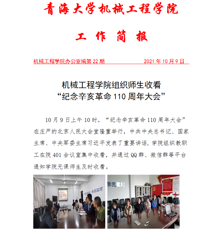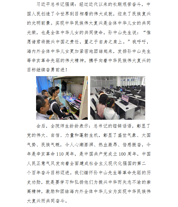 太阳集团tyc33455官网组织师生收看“纪念辛亥革命110周年大会”