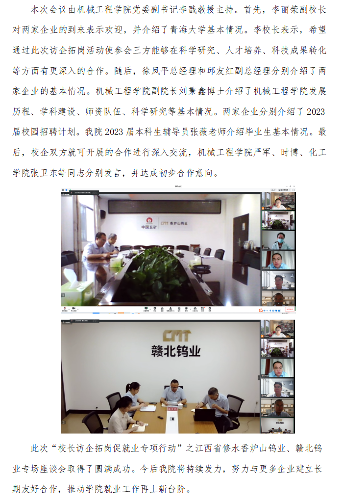 太阳集团tyc33455官网开展2022年书记校长访企拓岗促就业专项行动 ——江西省修水香炉山钨业、赣北钨业专场活动