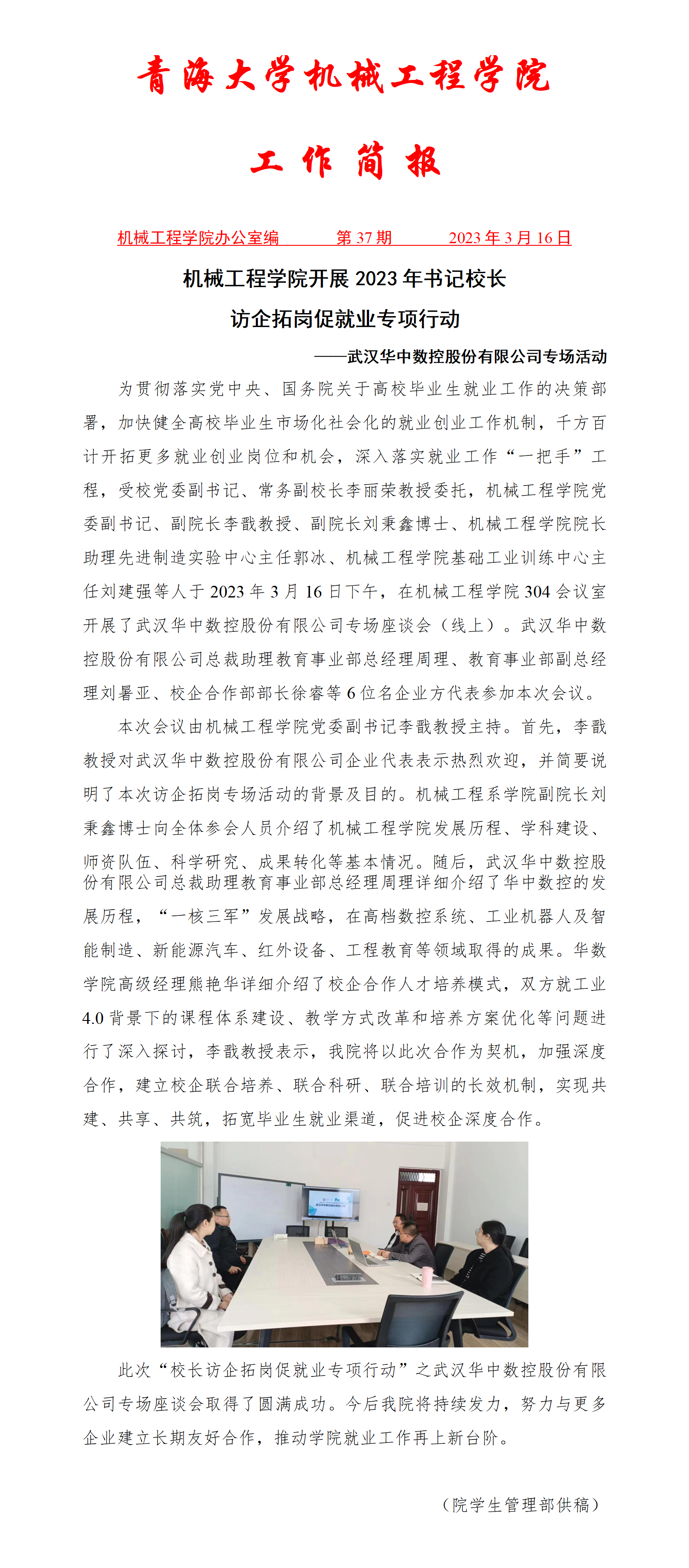 太阳集团tyc33455官网开展2023年书记校长访企拓岗促就业专项行动——武汉华中数控股份有限公司专场活动